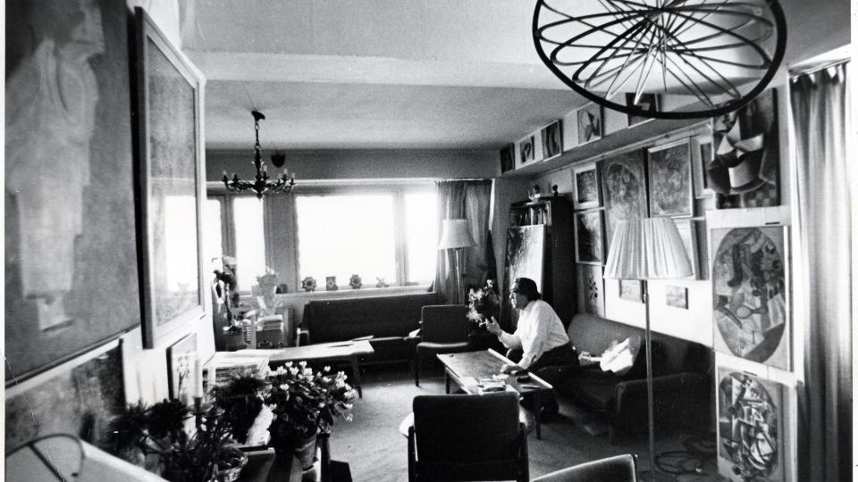 Légende du visuel : Igor Palmin, George Costakis dans son appartement à Moscou ©State Museum of Contemporary Art – Costakis collection