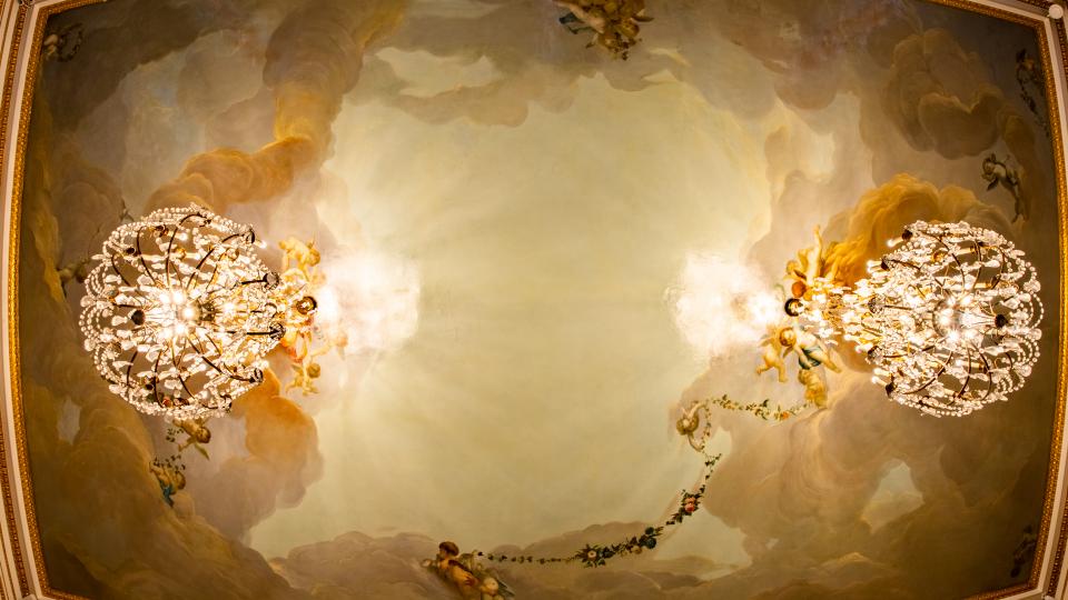 Légende : Plafond de l'Hôtel Hayme de Bomal (18 e s.) Copyright : Grand Curtius - Ville de Liège
