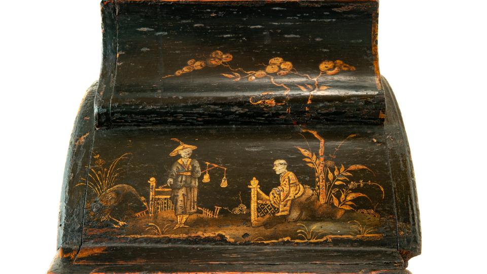 Ces Jolités de Spa sont ornées de différentes manières à travers le temps mais à cette époque, c’est la technique de la laque qui a le vent en poupe. A la fin du 17e siècle, les laques du Moyen-Orient apparaissent dans les grandes collections européennes et fascinent bon nombre de personnes, dont les artistes spadois. La laque naturelle étant extraite d’un arbre poussant dans ces régions éloignées, impossible pour eux d’y avoir accès. Ils décident donc de tenter d’imiter cette matière et y parviennent avec succès. Cette « laque spadoise » était bien souvent agrémentée, au début du 18e siècle, de décors dorés ou argentés relevés en bosse, imitant ceux des objets en laque chinois avec plus ou moins de succès. C’est ce qu’on appellera des